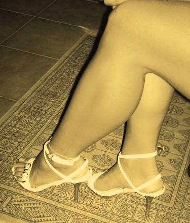 Ela sempre usava saltos, nossa que conjunto lindo de pernas, com uma leve tattoo no pezinho esquerdo, unhas, dedos e pele sempre bem tratados. Sim eu olhava e muito.